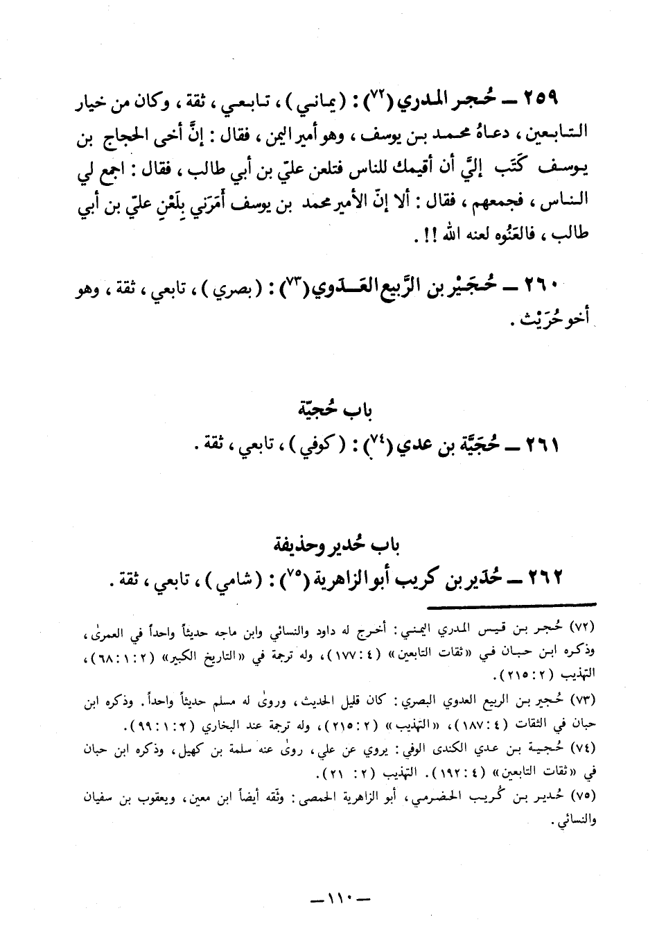 261- حجية بن عدي3: "كوفي"، تابعي، ثقة.
