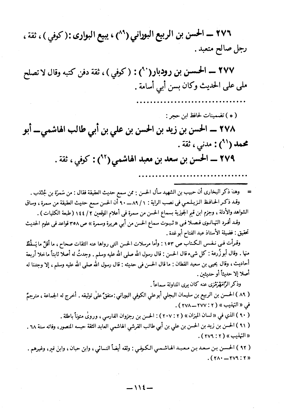 278- الحسن بن زيد بن الحسن بن علي بن أبي طالب الهاشمي أبو محمد3: مدني، ثقة.