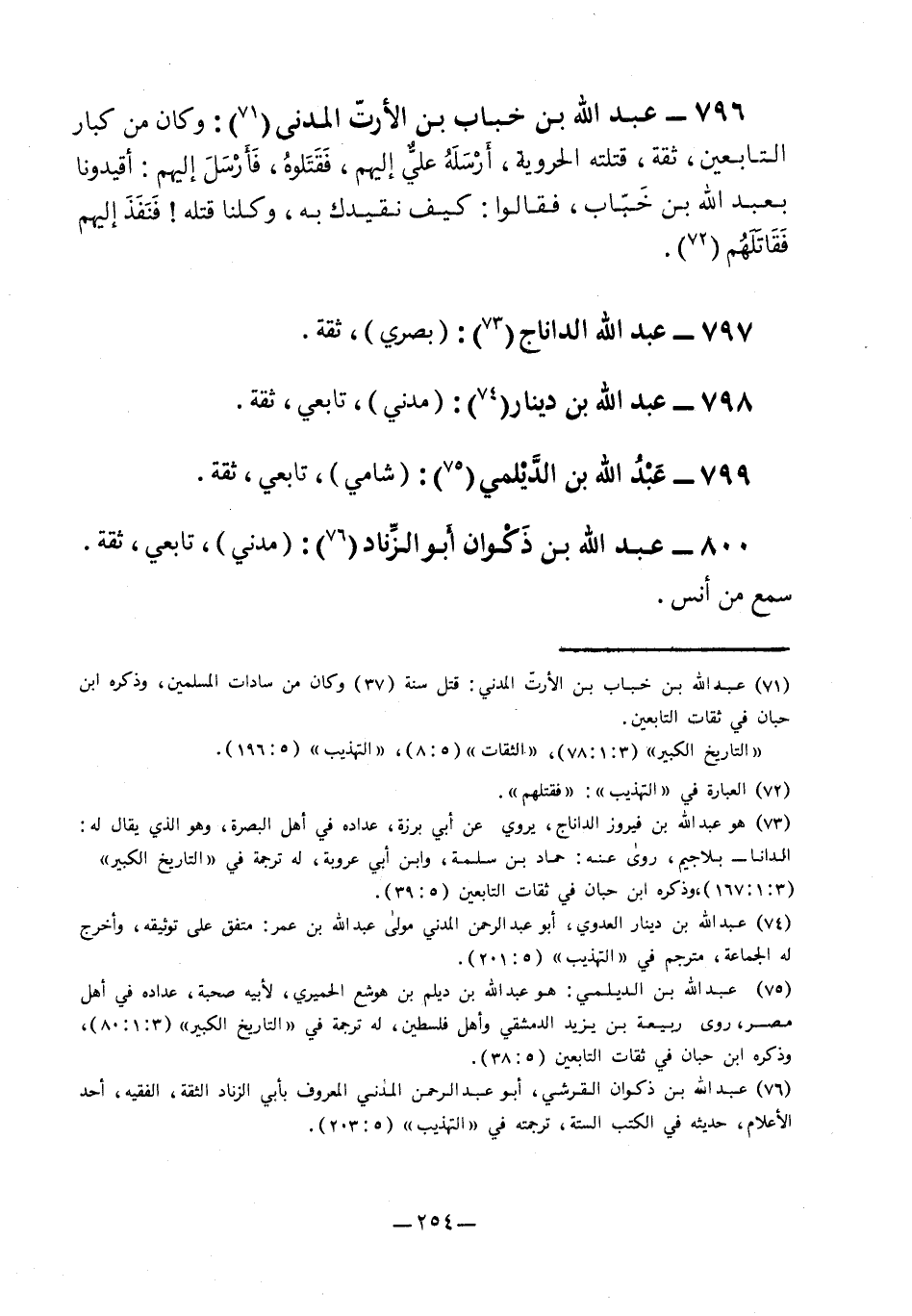 1 عبد الله بن خباب بن الأرتّ المدني: قتل سنة "37" وكان من سادات المسلمين، وذكره ابن حبان في ثقات التابعين.