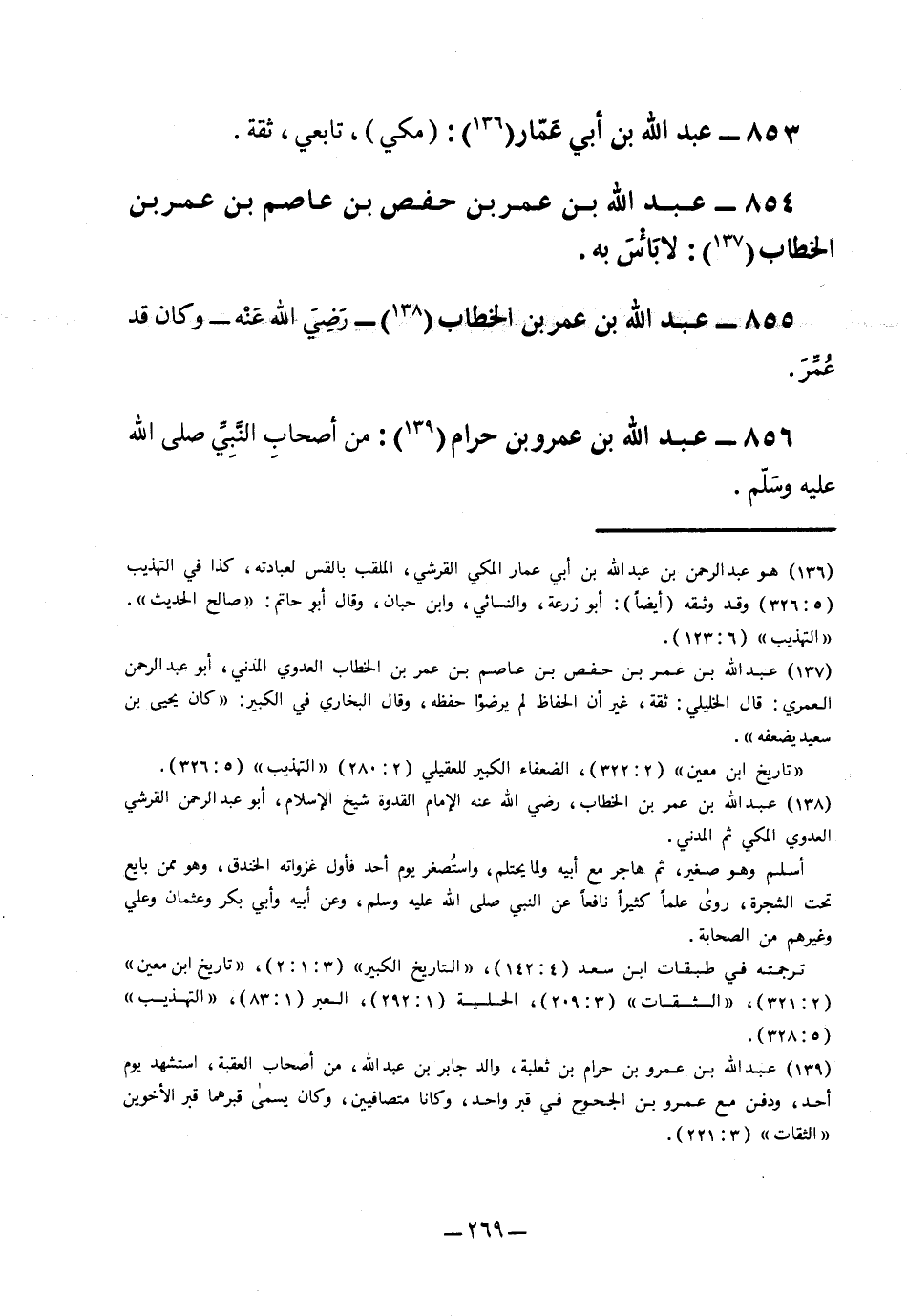 2 عبد الله بن عمر بن حفص بن عاصم بن عمر بن الخطاب العدوي المدني، أبو عبد الرحمن المصري: قال الخليلي: ثقة، غير أن الحفاظ لم يرضوا حفظه، وقال البخاري في الكبير: "كان يحيى بن سعيد يضعفه".