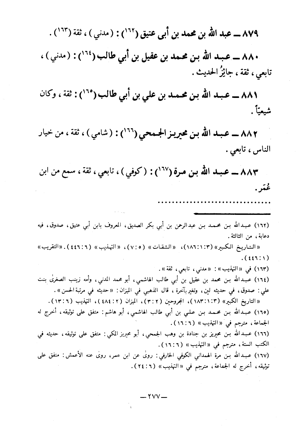 882- عبد الله بن محيريز الجمحي5: "شامي"، ثقة، من خيار الناس، تابعي.