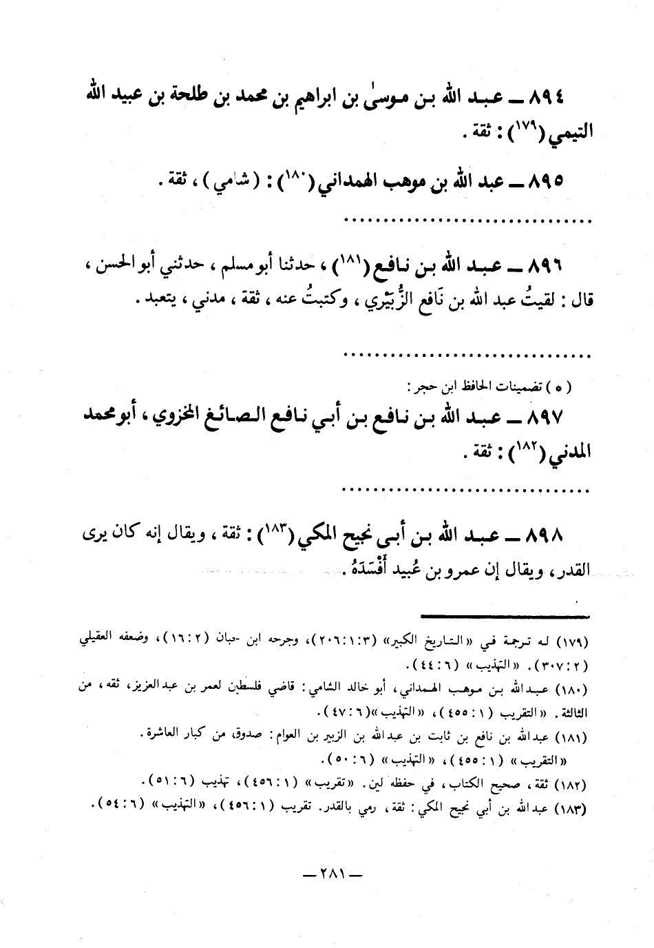 894- عبد الله بن موسى بن إبراهيم بن محمد بن طلحة بن عبيد الله التيمي1: ثقة.