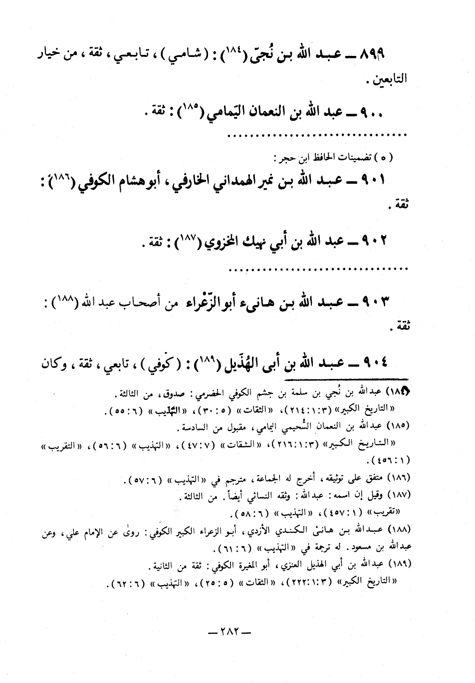 901- عبد الله بر نمير الهمداني الخارفي، أبو هشام الكوفي3: ثقة.