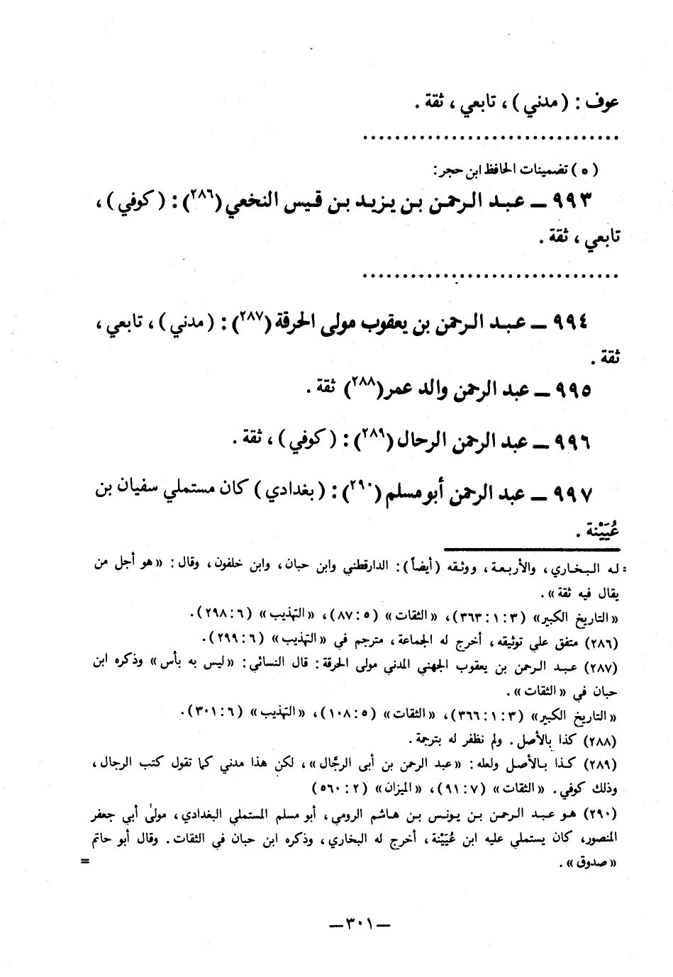 993- عبد الرحمن بن يزيد بن قيس النخعي1: "كوفي"، تابعي، ثقة.