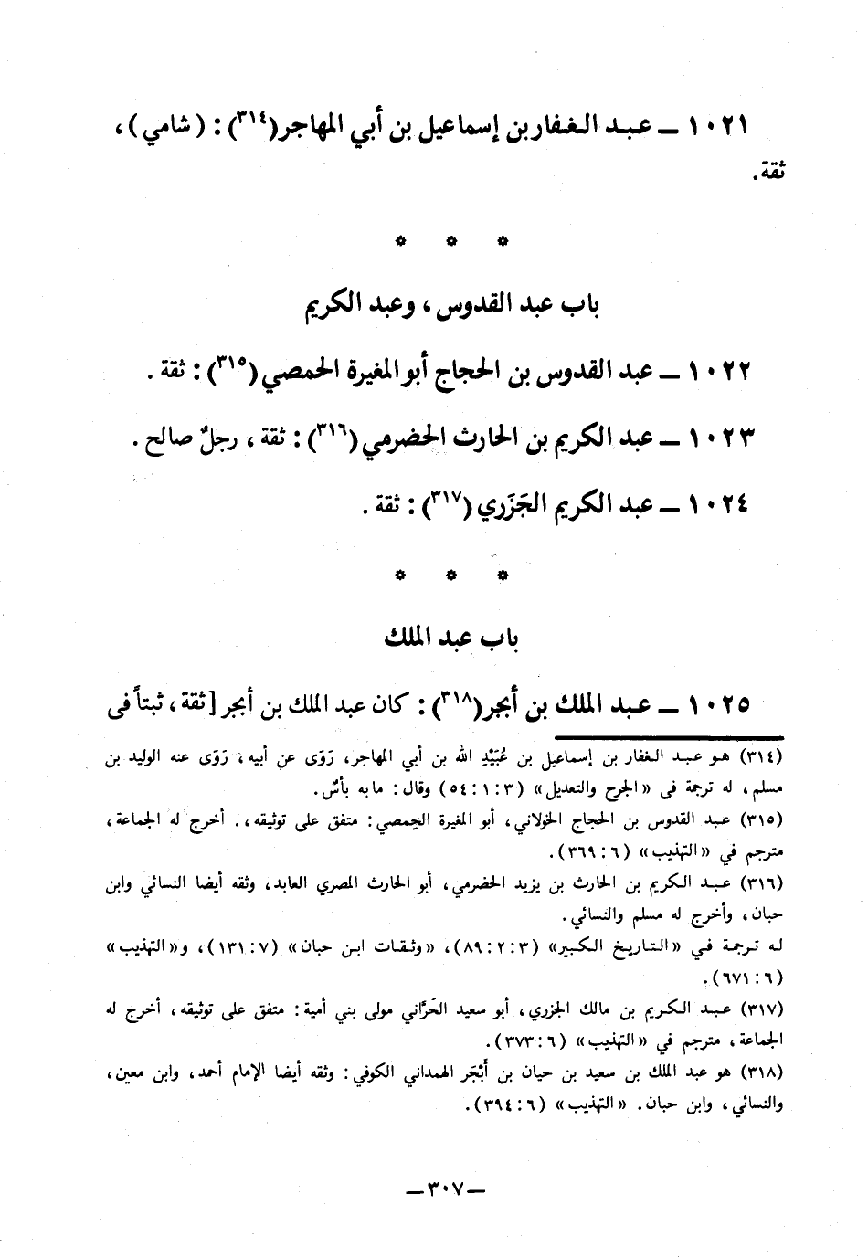 1021- عبد الغفار بن إسماعيل بن أبي المهاجر1: "شامي"، ثقة.