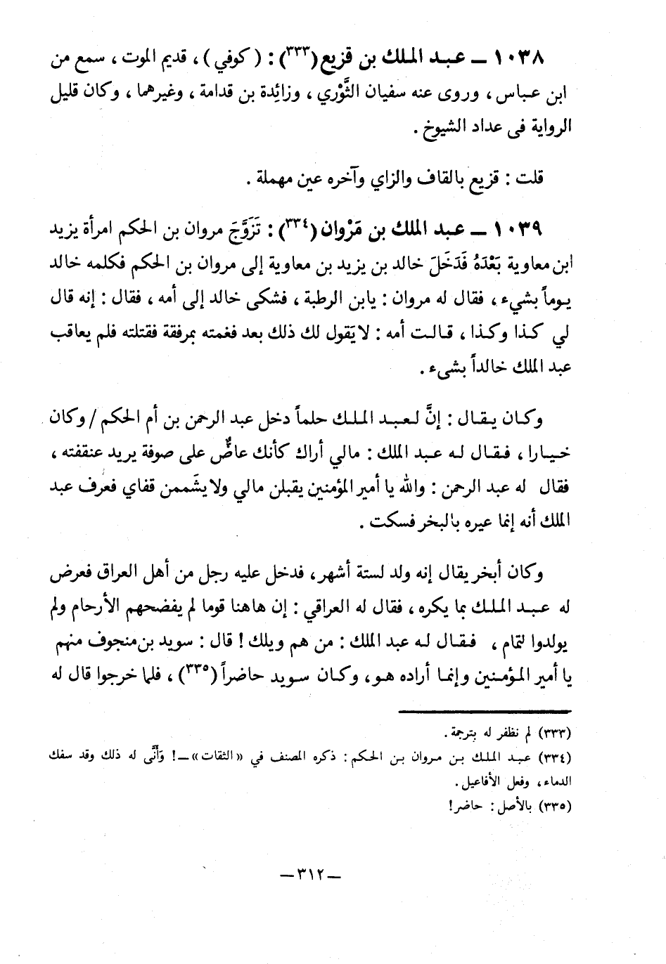 1039- عبد الملك بن مروان2: تزوج مروان بن الحكم امرأة يزيد بن معاوية بعده فدخل خالد بن يزيد بن معاوية إلى مروان بن الحكم فكلمه خالد يومًا بشيء، فقال له مروان: يابن الرطبة، فشكى خالد إلى أمه، فقال: إنه قال لي كذا وكذا، قالت أمه: لا يقول لك ذلك بعد فغمته بمرفقة فقتلته فلم يعاقب عبد الملك خالدًا بشيء.