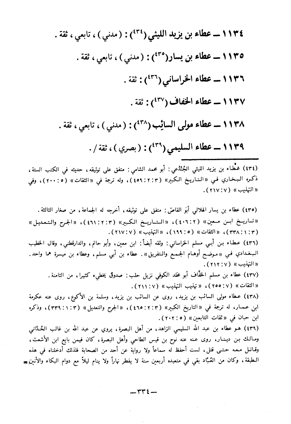 1138- عطاء مولى السائب5: "مدني"، تابعي، ثقة.