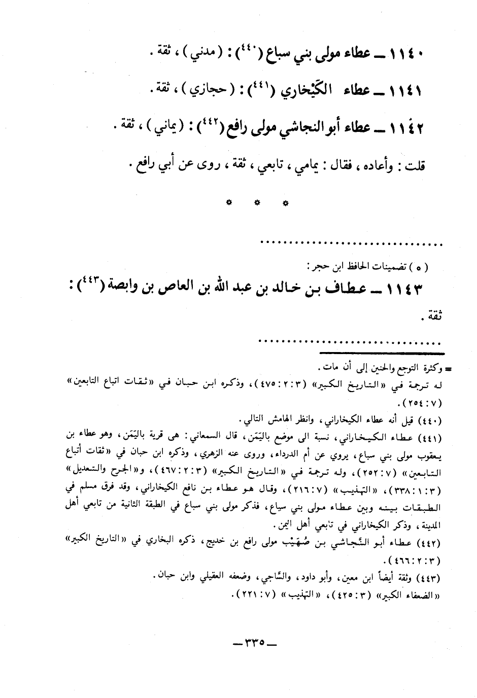 2 عطاء الكيخاراني، نسبة إلى موضع باليمن، قال السمعاني: هي قرية باليمن، وهو عطاء بن يعقوب مولى بني سباع، يروي عن أم الدرداء، وروى عنه الزهري، وذكره ابن حبان في "ثقات أتباع التابعين" "7: 252"، وله ترجمة في "التاريخ الكبير" "3: 2: 467"، و"الجرح والتعديل" "3: 1: 338"، "التهذيب" "7: 216"، وقال هو عطاء بن نافع الكيخاراني، وقد فرق مسلم في الطبقات بينه وبين عطاء مولى بني سباع، فذكر مولى بني سباع في الطبقة الثانية من تابعي أهل المدينة، وذكره الكيخاراني في تابعي أهل اليمن.