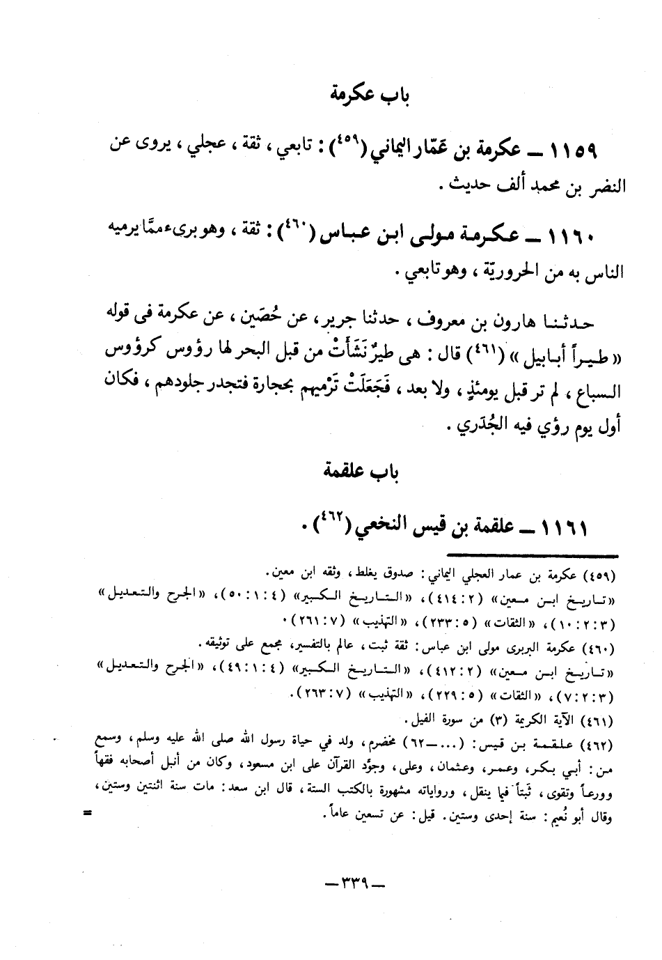 1160- عكرمة مولى ابن عباس2: ثقة، وهو بريء مما يرميه الناس به من الحرورية، وهو تابعي.