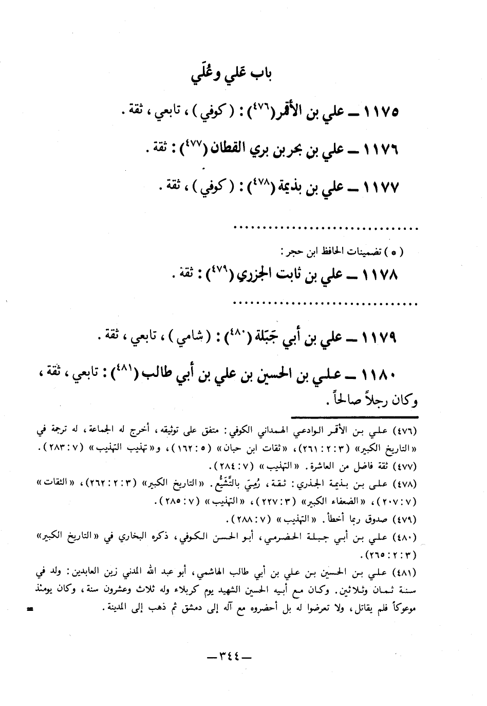 1180- علي بن الحسين بن علي بن أبي طالب6: تابعي، ثقة، وكان رجلًا صالحًا.