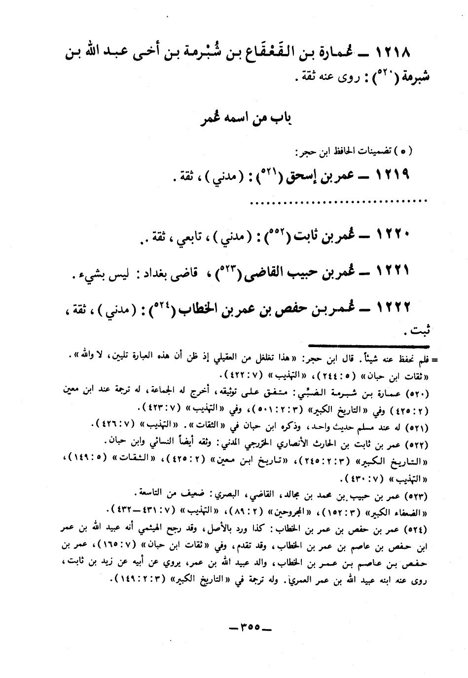 1222- عمر بن حفص بن عمر بن الخطاب5: "مدني"، ثقة، ثبت.