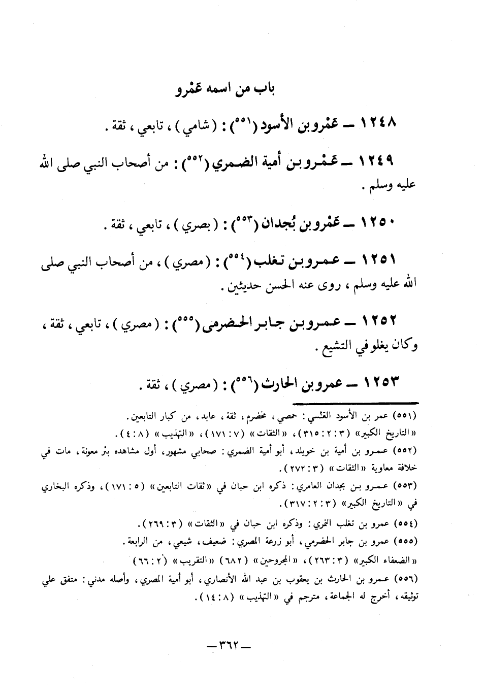 1252- عمرو بن جابر الحضرمي5: "مصري"، تابعي، ثقة، وكان يغلو في التشيع.
