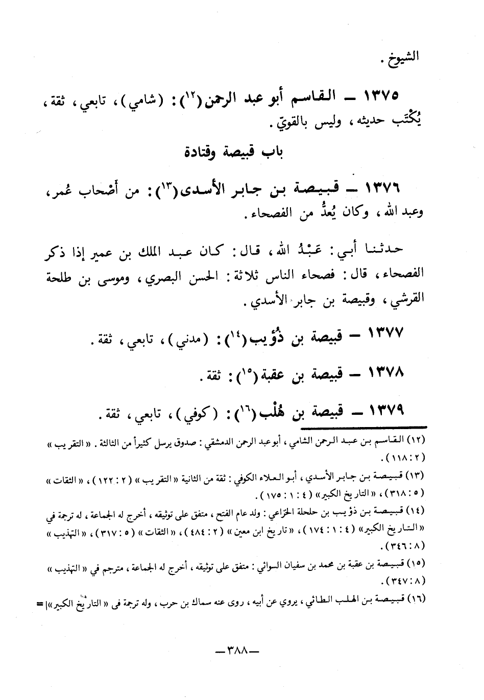 1376- قبيصة بن جابر الأسدي2: من أصحاب عمر، وعبد الله، وكان يعد من الفصحاء.