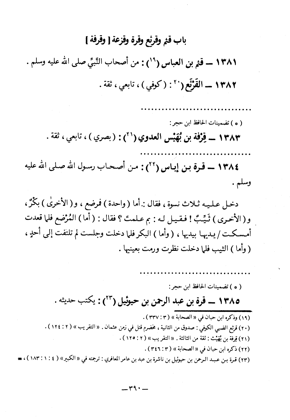 1384- قرة بن إياس4: من أصحاب رسول الله صلى الله عليه وسلم.