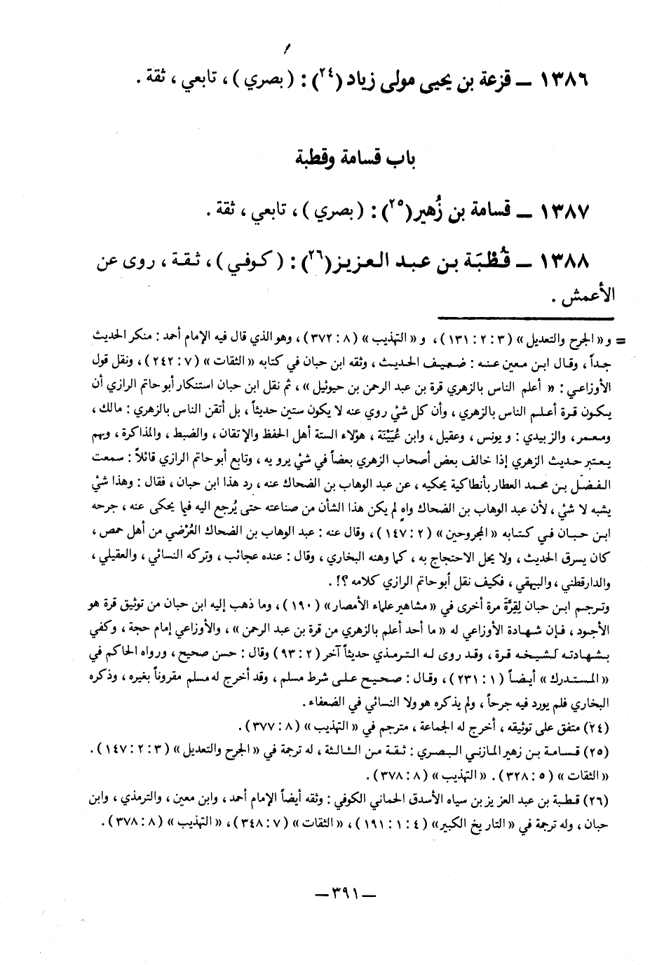 1388- قطبة بن عبد العزيز3: "كوفي"، ثقة، روى عن الأعمش.