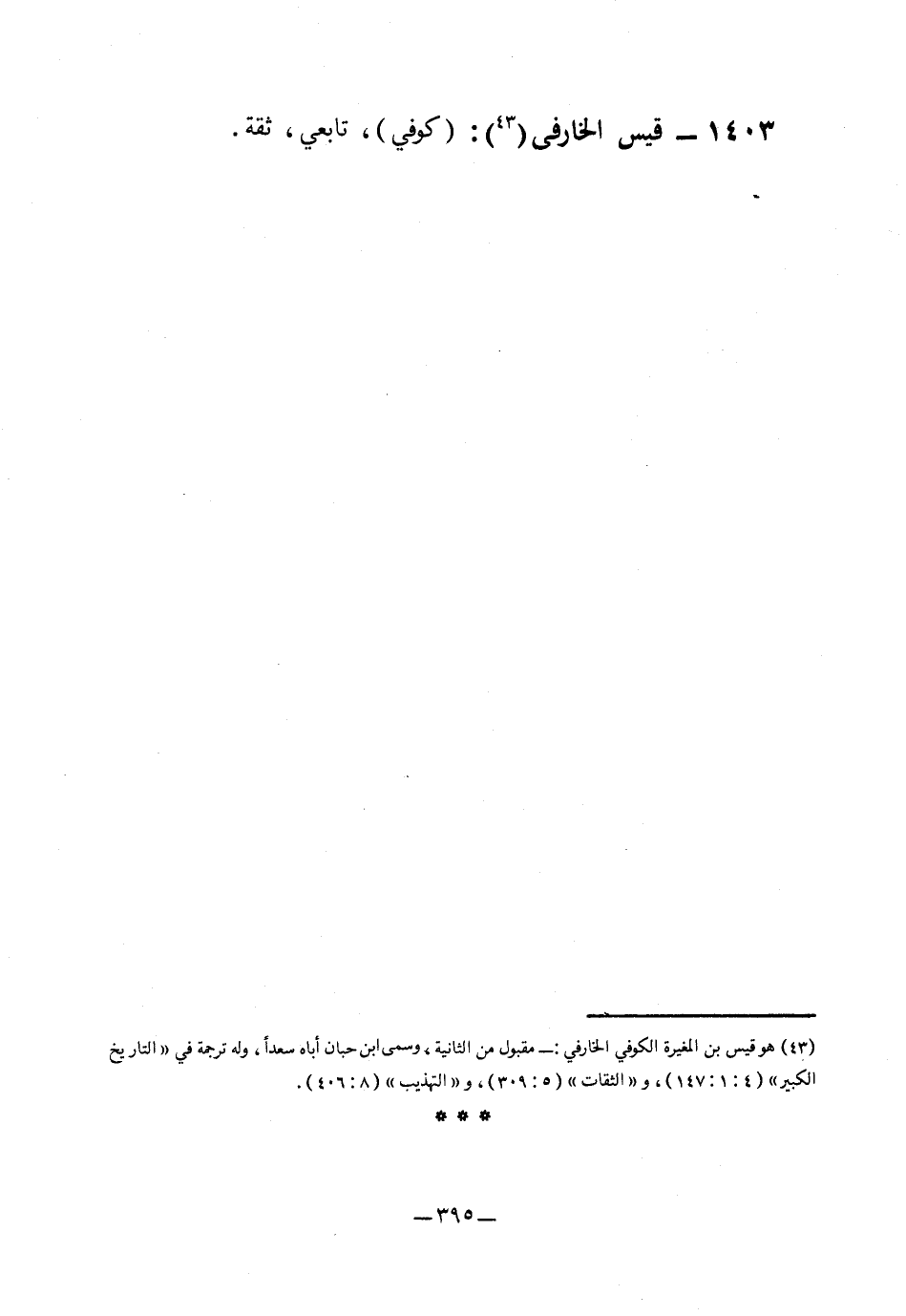 1403- قيس الخارفي1: "كوفي"، تابعي، ثقة.