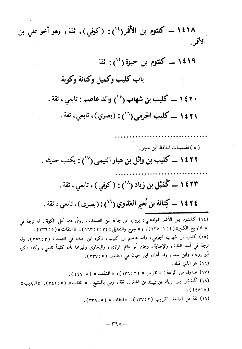 1420- كليب بن شهاب3: والد عاصم: تابعي، ثقة.
