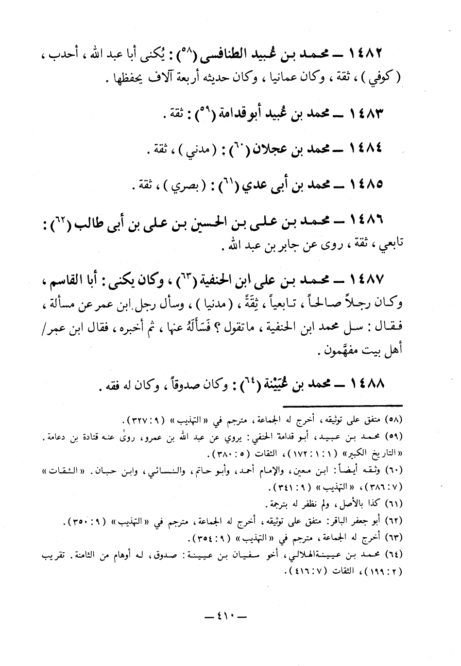 1486- محمد بن علي بن الحسين بن علي بن أبي طالب5: تابعي، ثقة، روى عن جابر بن عبد الله.