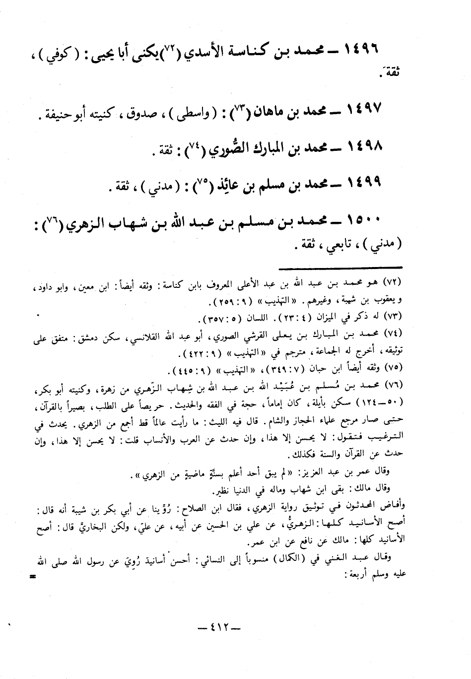 1496- محمد بن كناسة الأسدي1 يكنى أبا يحيى: "كوفي"، ثقة.