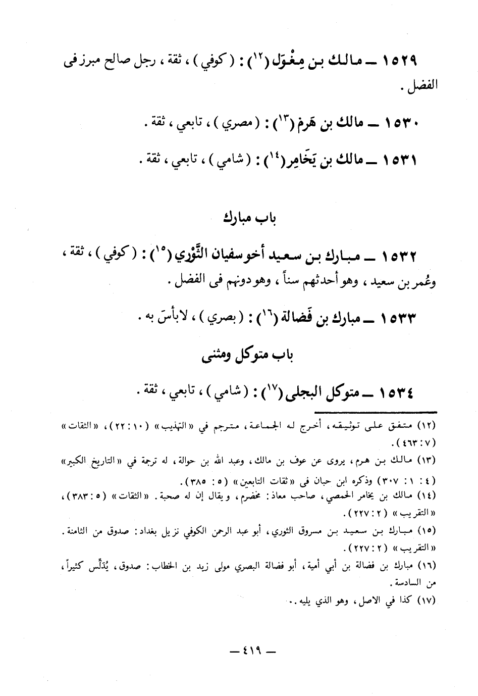1529- مالك بن مغول1: "كوفي"، ثقة، رجل صالح مبرز في الفضل.
