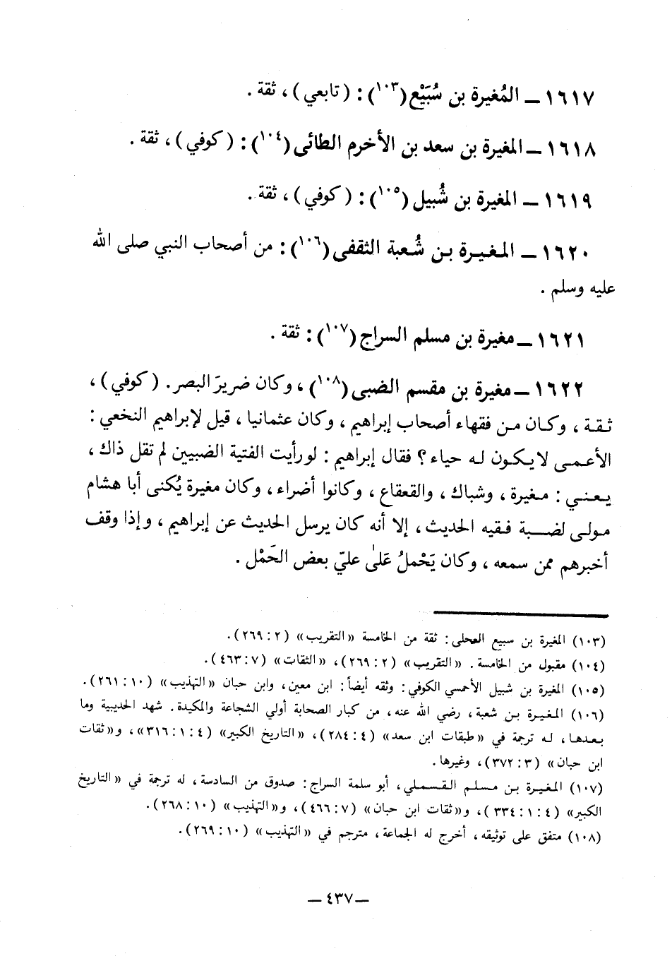 1 المغيرة بن سبيع العجلي: ثقة من الخامسة "التقريب" "2: 269".