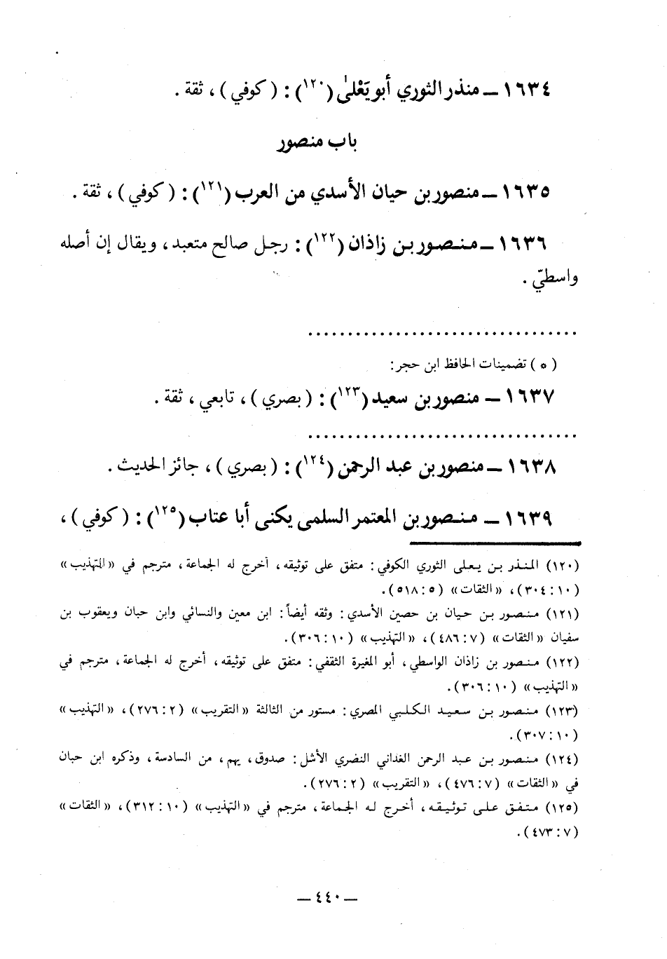 1639- منصور بن المعتمر السلمي يكنى أبا عتاب6: "كوفي"،