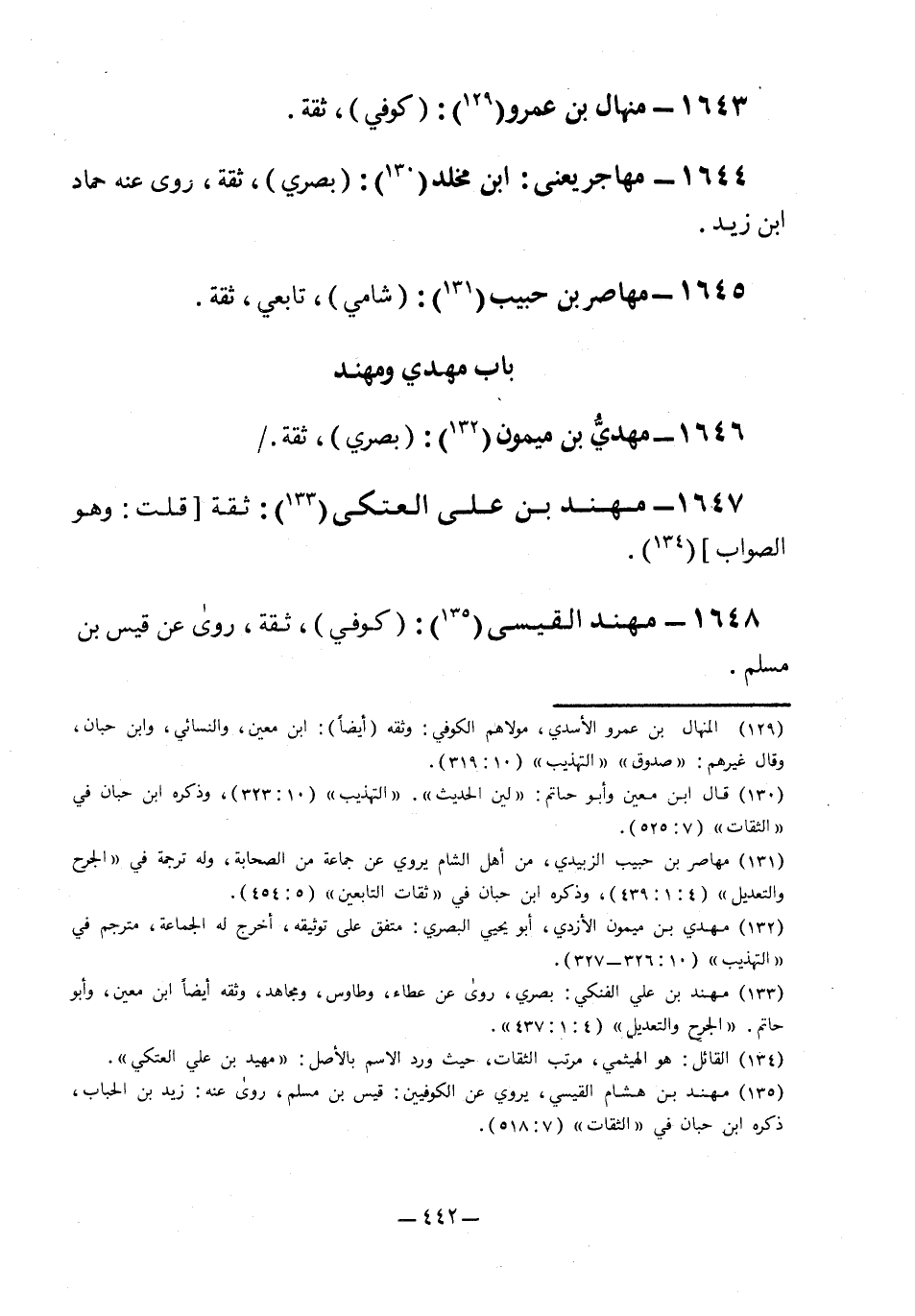 1647- مهند بن علي العتكي5: ثقة "قلت: وهو الصواب"6.