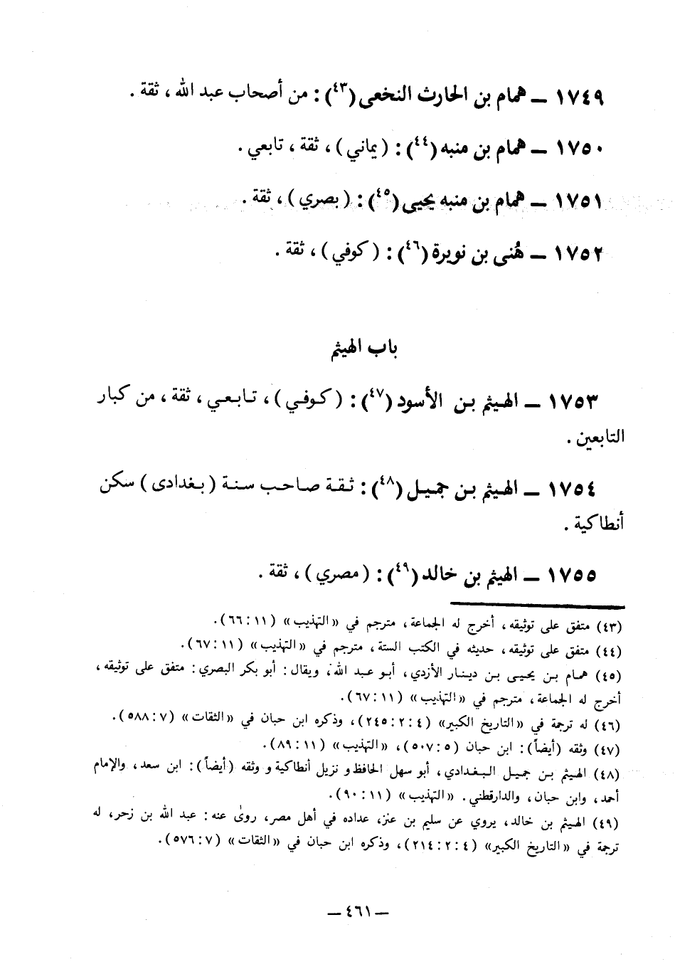 1754- الهيثم بن جميل6: ثقة, صاحب سنة, "بغدادي", سكن أنطاكية.
