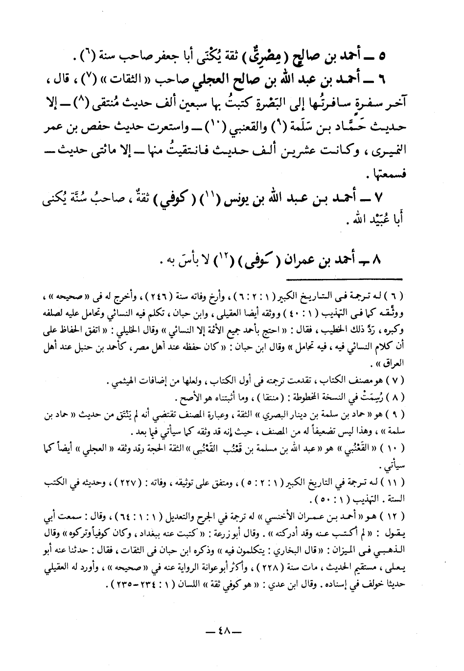 7- أحمد بن عبد الله بن يونس6 "كوفي" ثقة، صاحب سنة يكنى أبا عبيد الله.