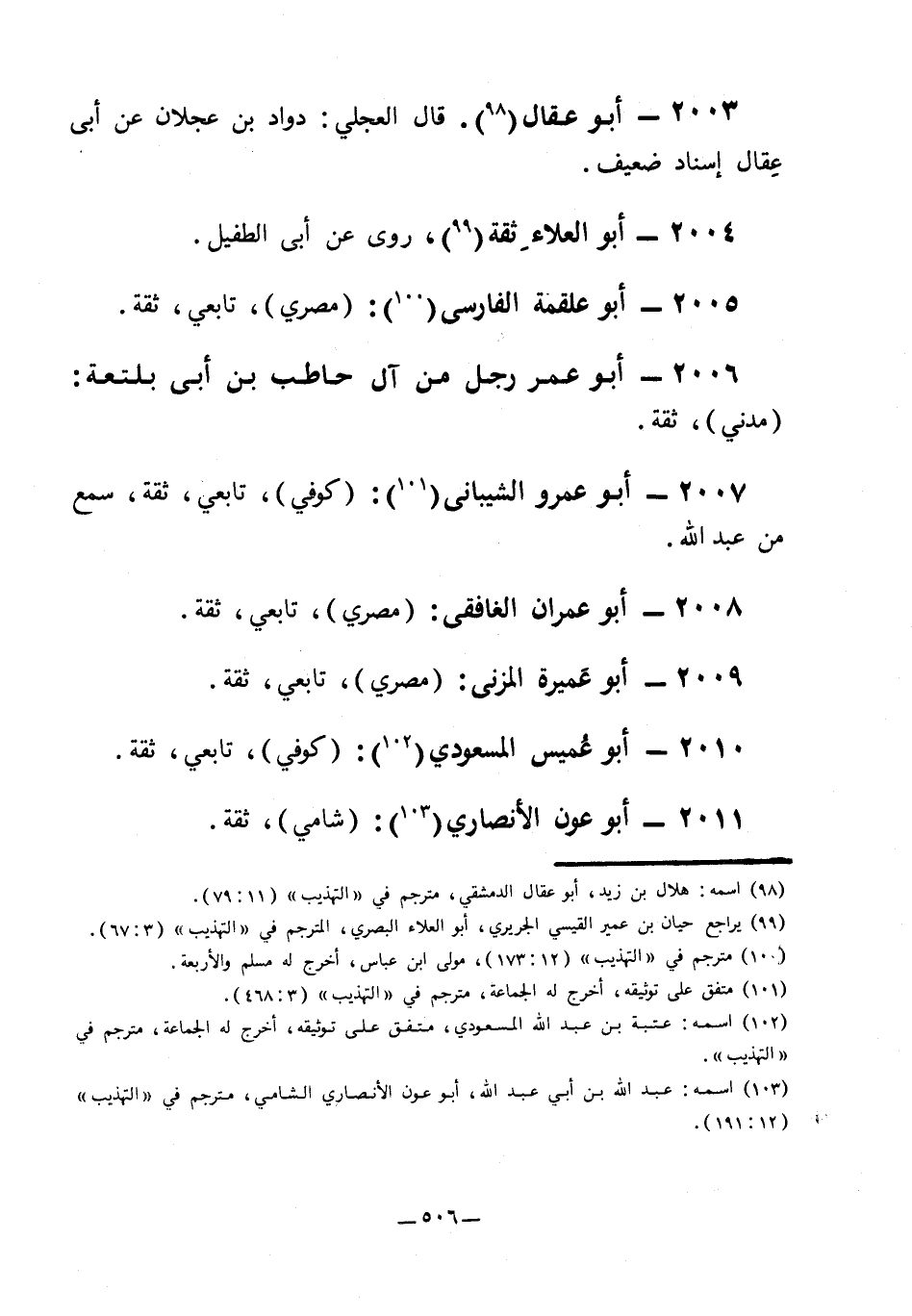 2011- أبو عون الأنصاري6: "شامي"، ثقة.