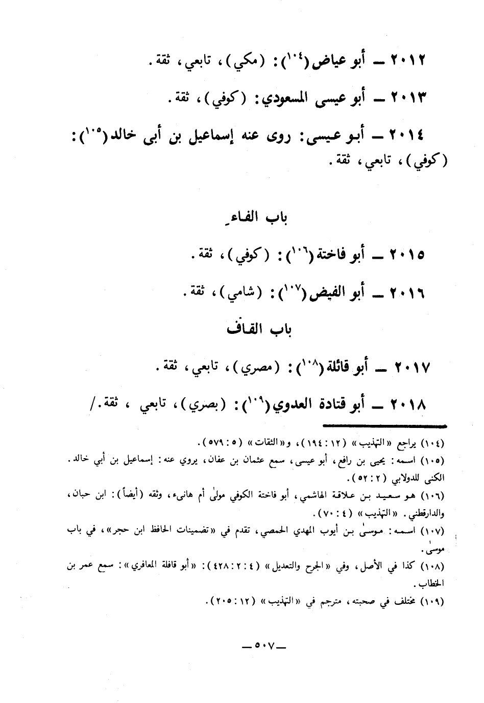 2017- أبو قائلة5: "مصري"، تابعي، ثقة.