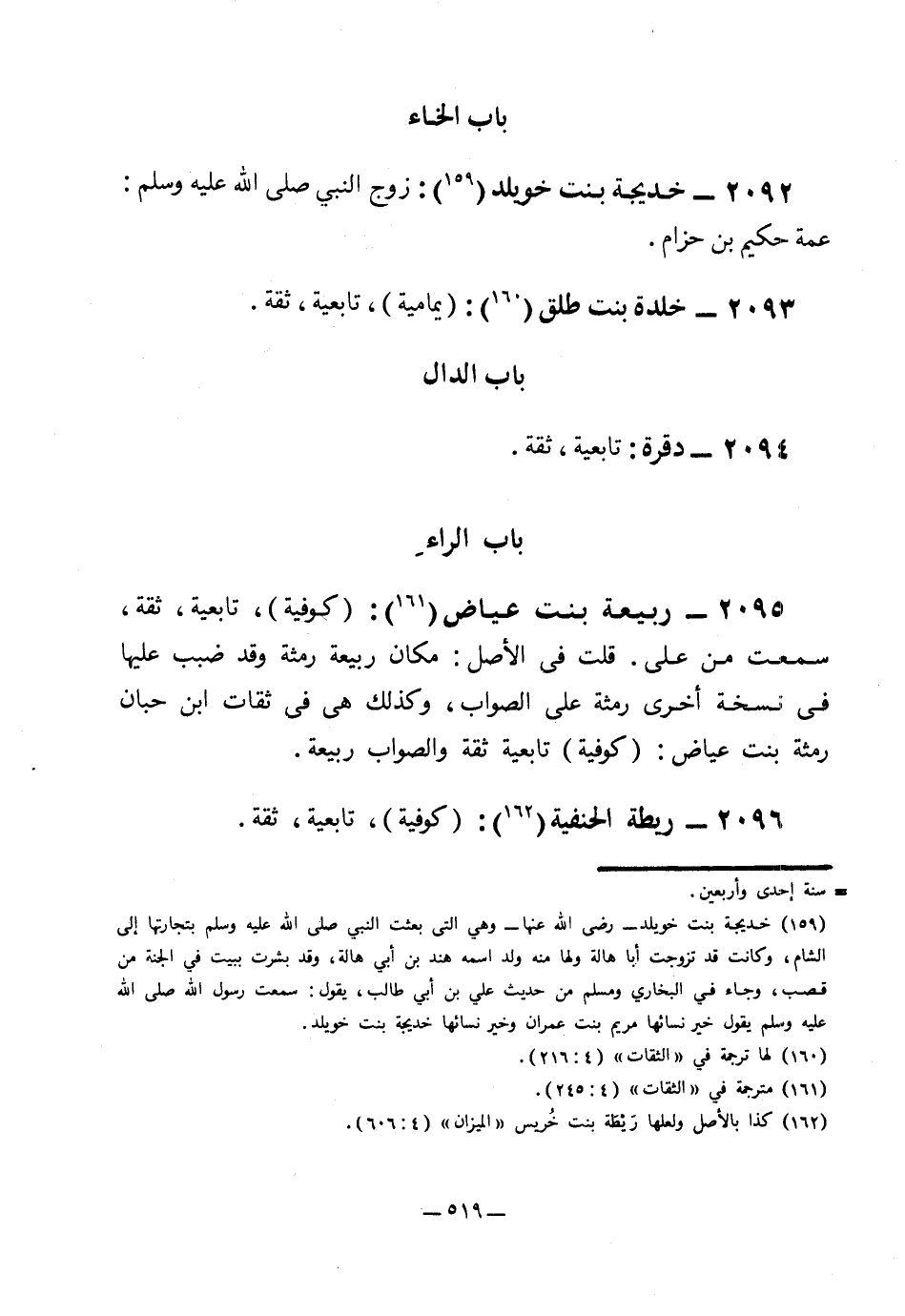 2092- خديجة بنت خويلد1: زوج النبي صلى الله عليه وسلم, عمة حكيم بن حزام.