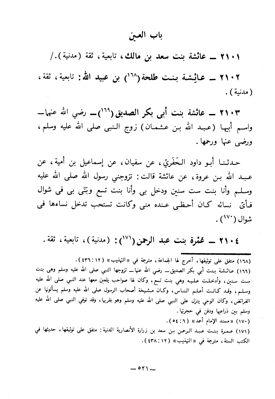 2101- عائشة بنت سعد بن مالك، تابعية، ثقة "مدنية".