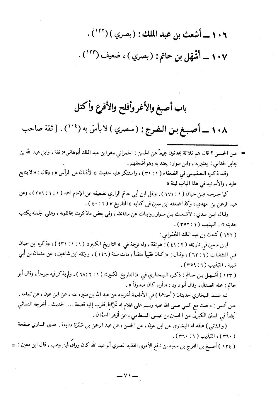 108- أصبغ بن الفرج: "مصري" لا بأس به3. "ثقة صاحب