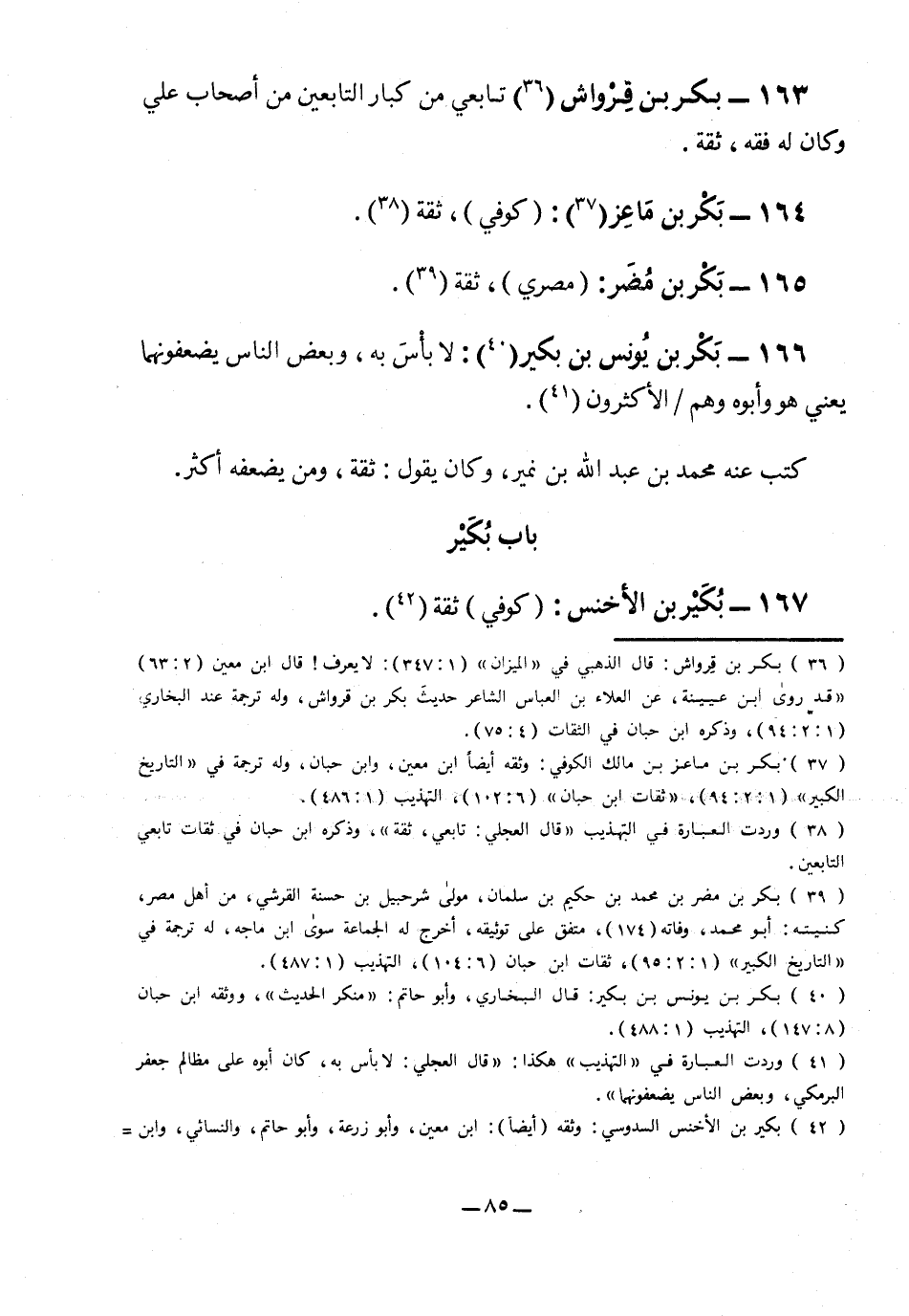 166- بكر بن يونس بن بكير5: لا بأس به، وبعض الناس يضعفونهما يعني هو وأبوه وهم الأكثرون6.