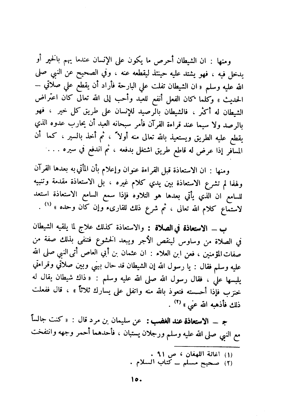 ج - الاستعاذة عند الغضب: عن سليمان بن مرد قال: