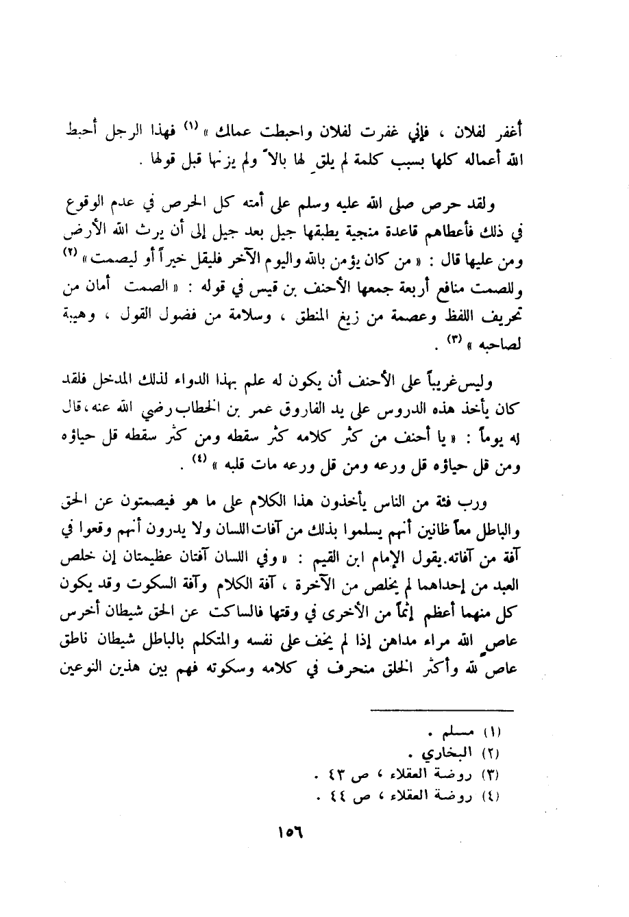 ورب فئة من الناس ياخذون هذا الكلام على ما هو فيصمتون عن الحق والباطل معا ظانين انهم يسلموا بذلك من آفات اللسان ولا يدرون انهم وقعوا في آفة من آفاته