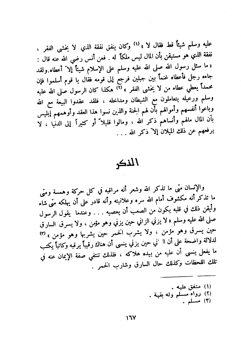 عليه وسلم شيئا قط فقال لا وكان ينفق نفقة الذي لا يخشى الفقر نفقة الذي هو مستيقن بان المال ليس ملكا له. فعن انس رضي الله عنه قال ما سئل رسول الله صلى الله عليه وسلم على شيئا الا اعطاه ولقد جاءه رجل فاعطاه غنما بين جبلين فرجع الى قومه فقال يا قوم اسلموا فان محمدا يعطي عطاء من لا يخشى الفقر هكذا كان رسول الله صلى الله عليه وسلم ورعيله يتعاملون مع الشيطان ومداخله فلقد عقدوا البيعة مع الله وباعوا انفسهم واموالهم بان لهم الجنة والذين نسوا هذا العقد واوهمهم ابليس بان المال مالهم وانساهم ذكر الله ومالوا قليلا او كثيرا الى الدنيا لا يرفعهم عن ذلك الميلان الا ذكر الله ...