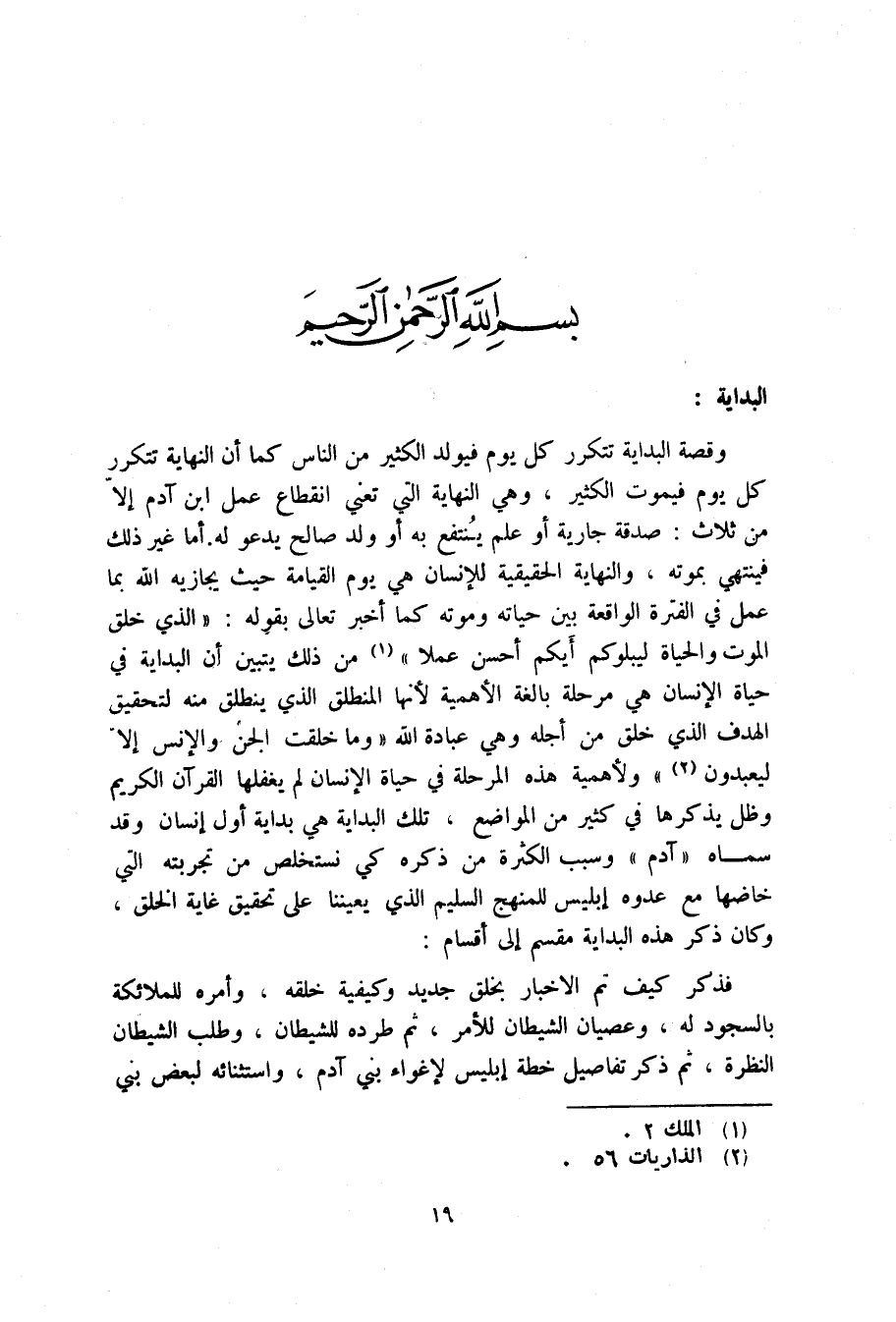 من ذلك يتبين ان البداية في حياة الانسان هي مرحلة بالغة الاهمية لانها المنطلق الذي ينطلق منه لتحقيق الهدف الذي خلق من اجله وهي عبادة الله.