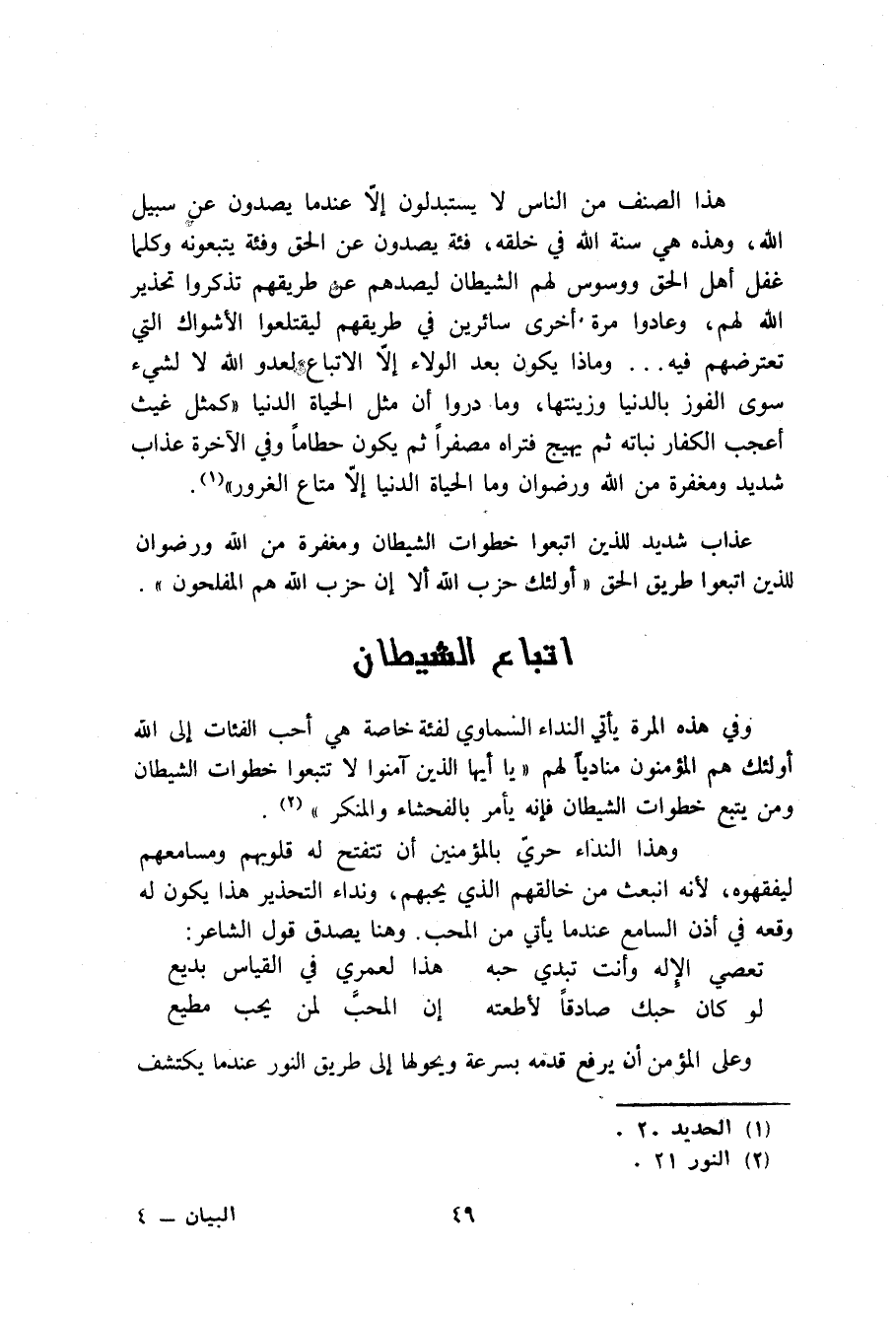 عذاب شديد للذين اتبعوا خطوات الشيطان ومغفرة من الله ورضوان للذين اتبعوا طريق الحق.