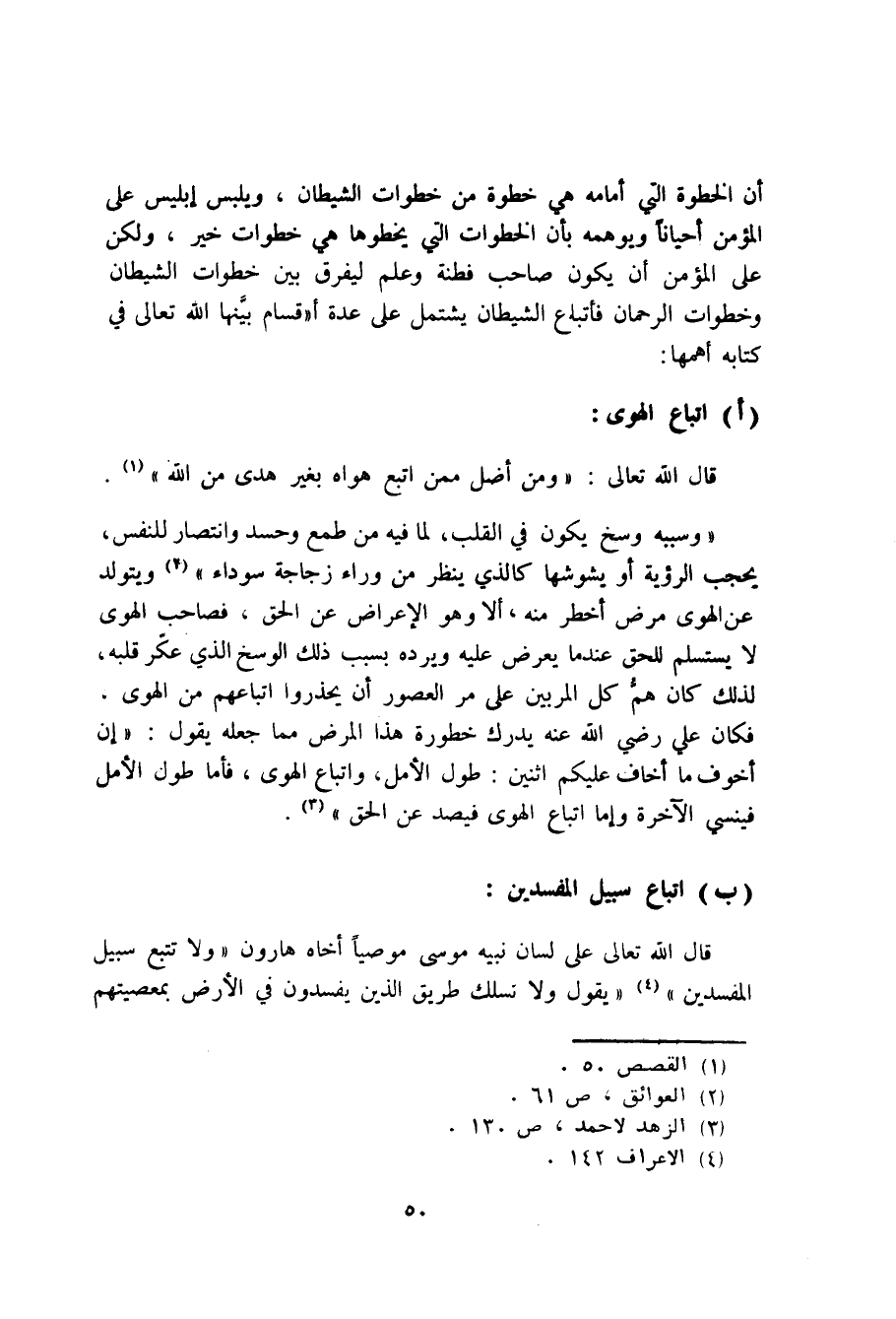 ان الخطوة التي امامه هي خطوة من خطوات الشيطان ويلبس ابليس على المؤمن ان يكون صاحب فطنة وعلم ليفرق بين خطوات الشيطان وخطوات الرحمن فاتباع الشيطان يشتمل على عدة اقسام بينها الله تعالى في كتابه اهمها.