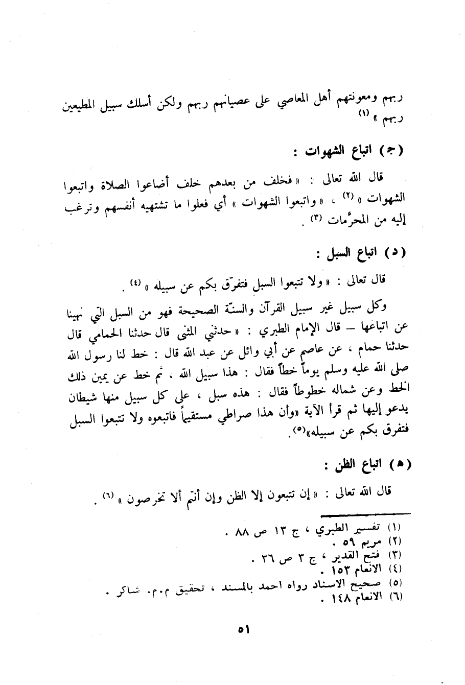 وكل سبيل غير سبيل القرآن والسنة الصحيحة فهو من السبل التي نهينا عن اتباعها قال الامام الطبري:" حدثنا الحمامي قال حدثنا حمام عن عاصم عن ابي وائل عن عبد الله قال: خط لنا رسول الله صلى الله عليه وسلم يوما خطا فقال: هذا سبيل الله. ثم خط عن يمين ذلك الخط وعن شماله خطوطا فقال: هذه سبل على كل سبيل منها شيطان يدعو اليها ثم قرأ الاية " وان هذا صراطي مستقيما فاتبعوه ولا تتبعوا السبل فتفرق بكم عن سبيله