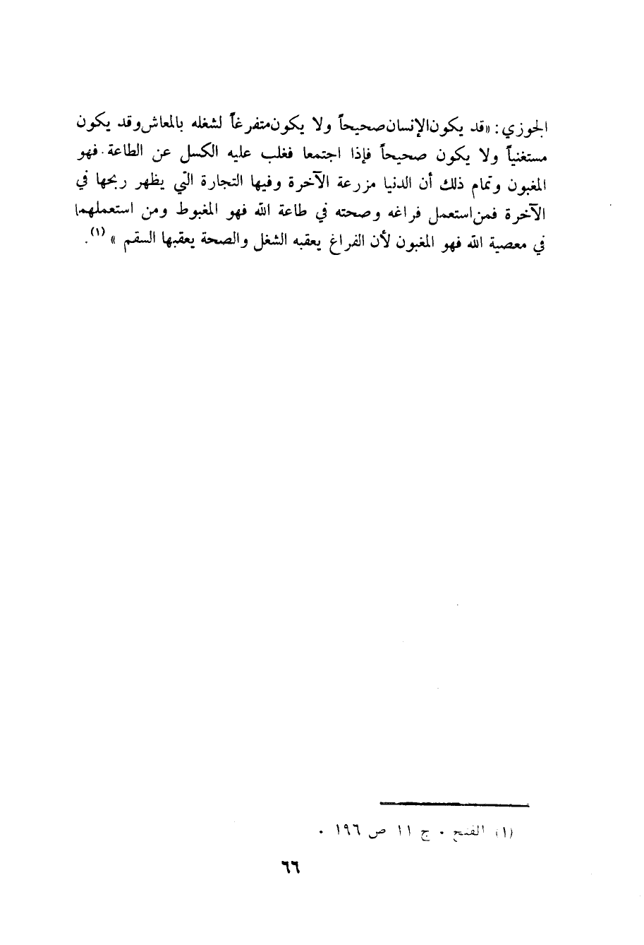قد يكون الانسان صحيحا ولا يكون متفرغا لشغله بالمعاش وقد يكون مستغنيا ولا يكون صحيحا فاذا اجتمعا فغلب عليه الكسل عن الطاعة فهو المغبون وتمام ذلك ان الدنيا مزرعة الآخرة وفيها التجارة التي يظهر ربحها في الآخرة فمن استعمل فراغه وصحته في طاعة الله فهو المغبوط ومن استعملها في معصية الله فهو المغبون لان الفراغ يعقبه الشغل والصحة يعقبها السقم.