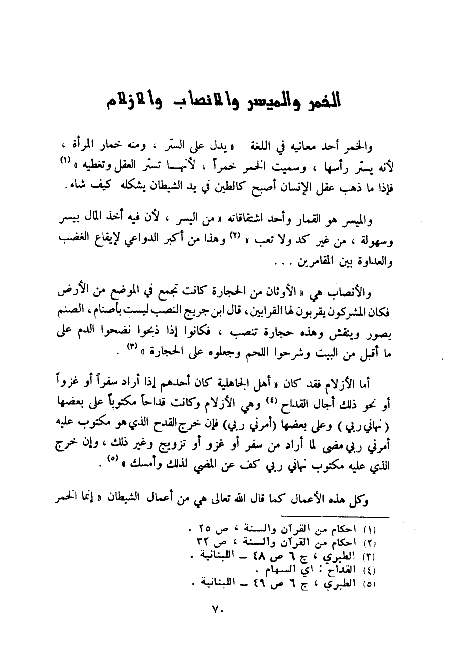 الخمر والميسر والانصاب والازلام