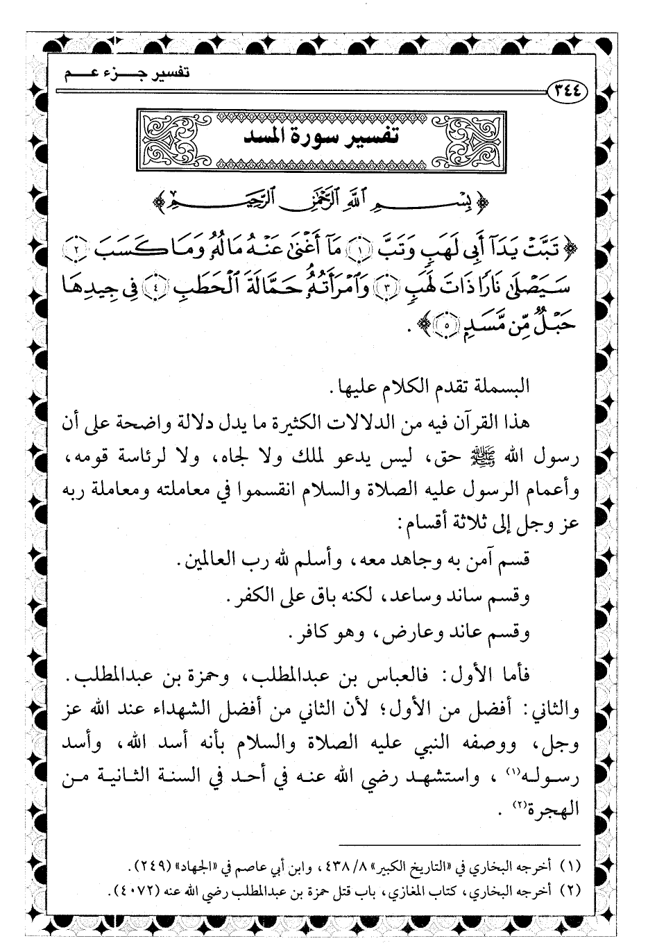 هذا القرآن فيه من الدلالات الكثيرة ما يدل دلالة واضحة على أن رسول الله صلى الله عليه وسلّم حق، ليس يدعو لملك ولا لجاه، ولا لرئاسة قومه، وأعمام الرسول عليه الصلاة والسلام انقسموا في معاملته ومعاملة ربه عز وجل إلى ثلاثة أقسام:
