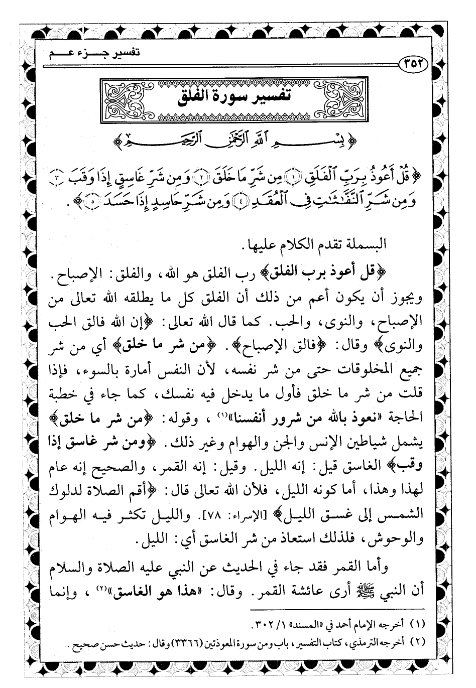 (¬2) أخرجه الترمزي، كتاب التفسير، باب ومن سورة المعوذتين (3366) وقال حديث حسن صحيح.