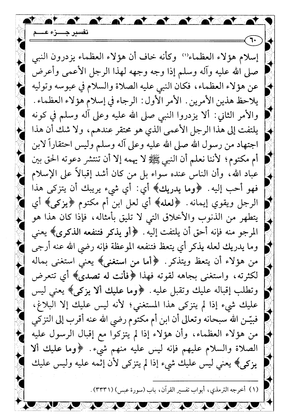 (¬1) أخرجه الترمزي، أبواب تفسير القرءان، باب سورة عبس (3331) .