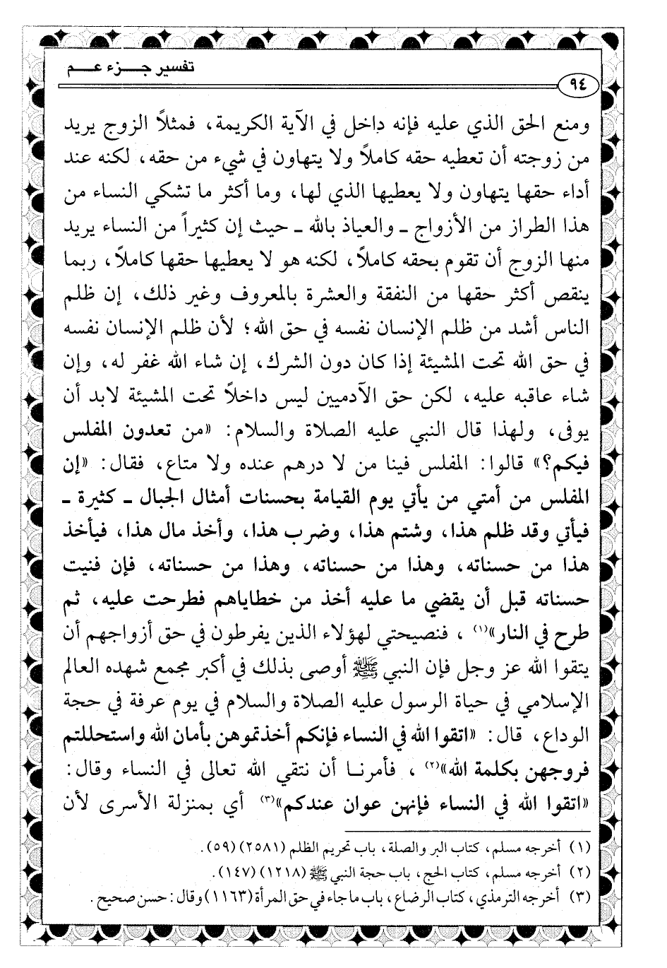 (¬3) أخرجه الترمزي كتاب الرضاع، باب ما جاء في حق المرأة (1163) وقال حسن صحيح.