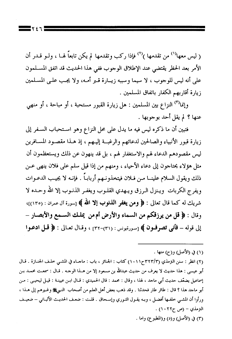 وإنما النزاع بين المسلمين: هل زيارة القبور مستحبة، أو مباحة، أو منهي عنها؟ لم يقل أحد بوجوبها.