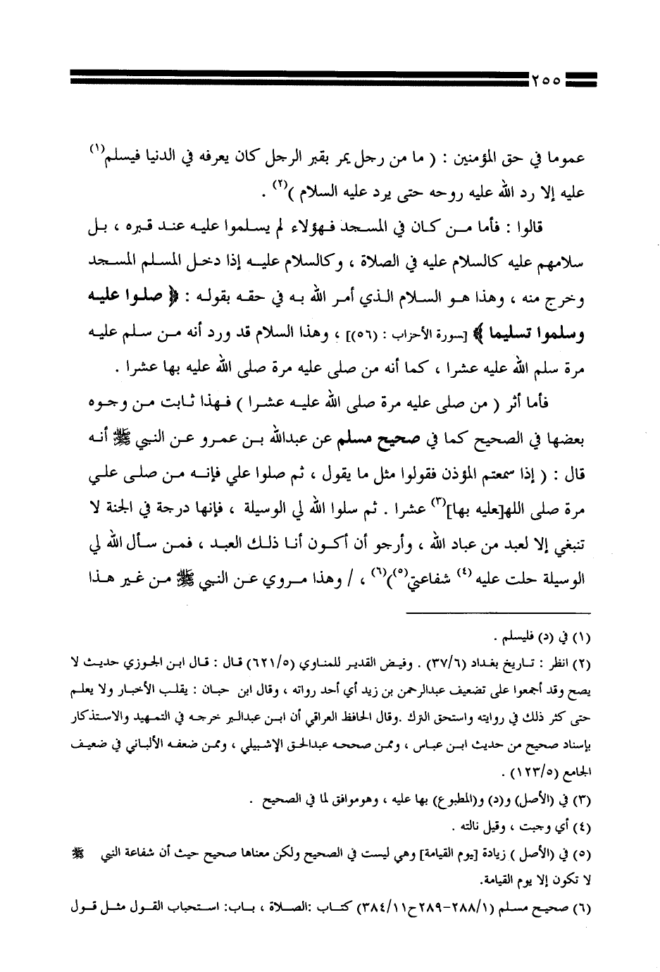 قالوا: فأما من كان في المسجد فهؤلاء لم يسلموا عليه عند قبره، بل سلامهم عليه كالسلام عليه في الصلاة، وكالسلام عليه إذا دخل المسلم المسجد وخرج منه، وهذا هو السلام الذي أمر الله به في حقه بقوله: {صلوا عليه وسلموا تسليمًا} [سورة الأحزاب: (56)]، وهذا السلام قد ورد أنه من سلم عليه مرة سلم الله عليه عشرًا، كما أنه من صلى عليه مرة صلى الله عليه بها عشرًا.